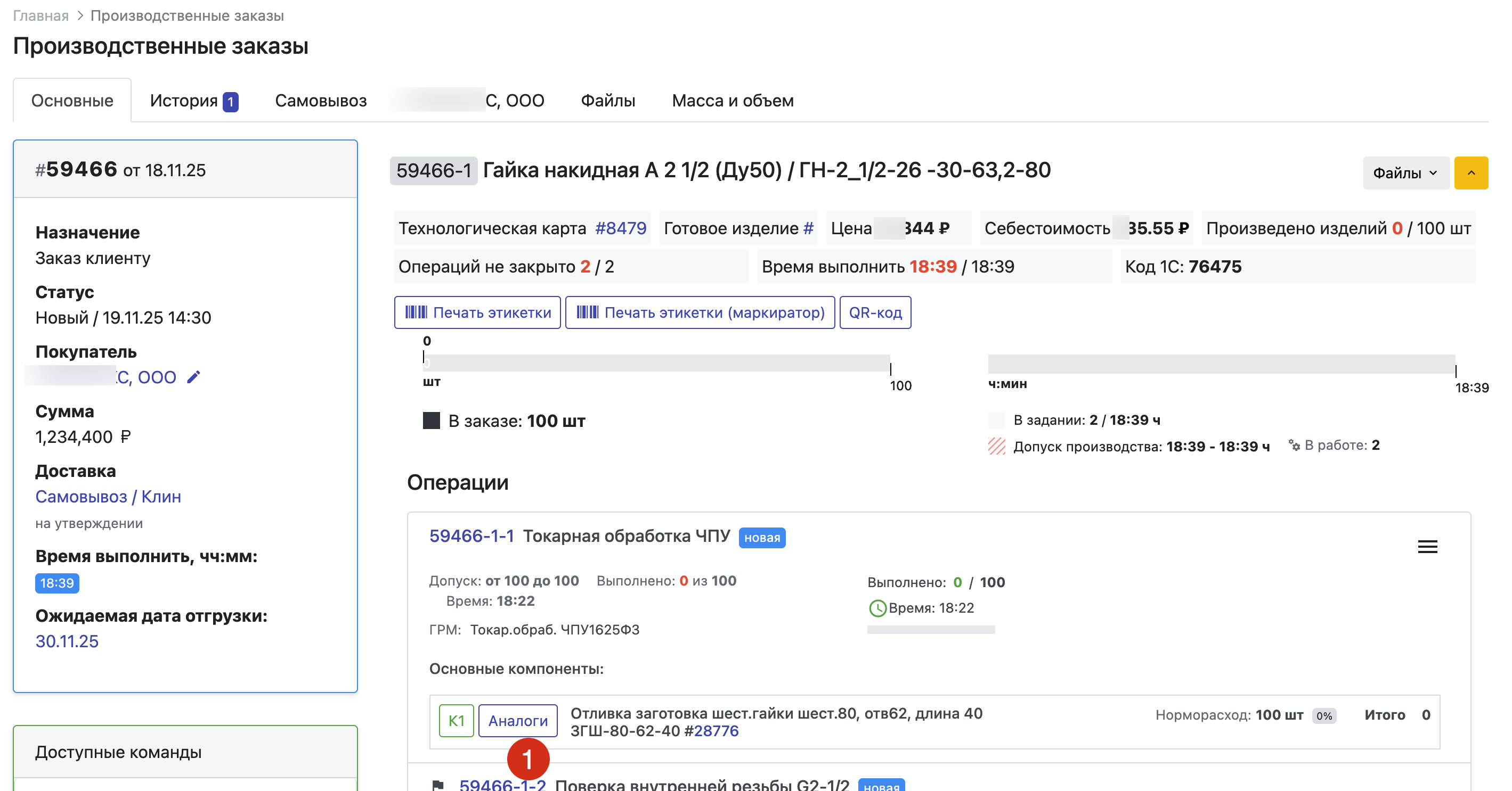 - Произвести изделия с участием компонента. Поле ввода, где мастер указывает количество изделий в заказе, которое будет произведено с участием выбранного им компонента или аналога.