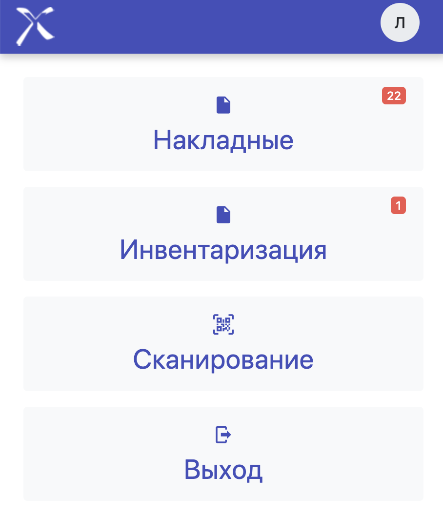 Если в системе есть инвентаризации, находящиеся в состоянии подсчета фактических количеств ТМЦ, в кнопке "Инвентаризация" кладовщику показывается количество таких инвентаризаций. Клик по данной кнопке переводит кладовщика на список инвентаризации, подлежащих подсчету фактических остатков.